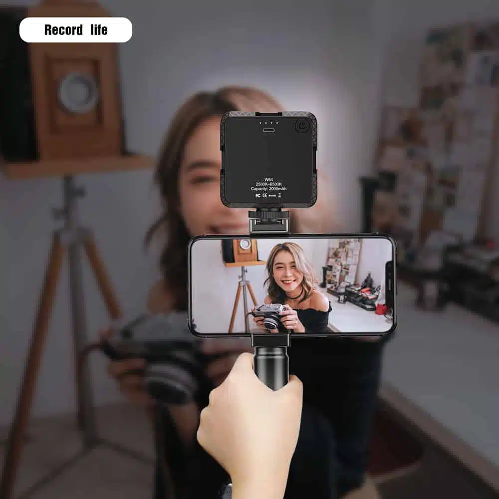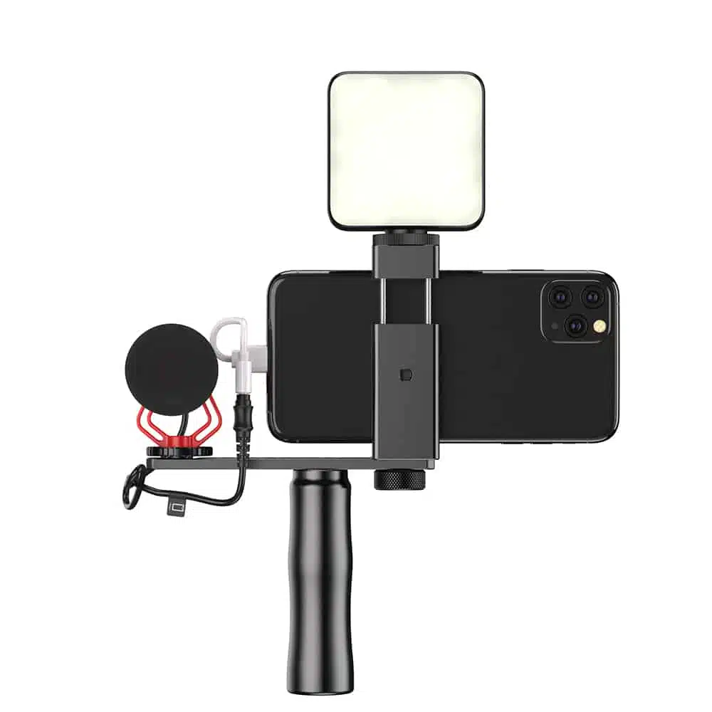 APEXEL Vlog Light and Wired Microphone with Grip