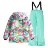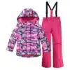 Girls Colored Snow Wear Waterproof Snowsuit 2 Piece Ski Jackets Pants Windproof Hooded Snow Coat for Kids