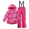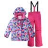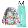 Girls Colored Snow Wear Waterproof Snowsuit 2 Piece Ski Jackets Pants Windproof Hooded Snow Coat for Kids