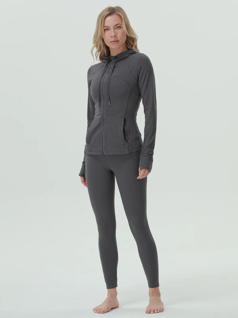Yoga Sports Jackets Slim Fit Thumb holes Woman Sport Jacket Hoodie