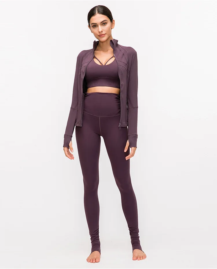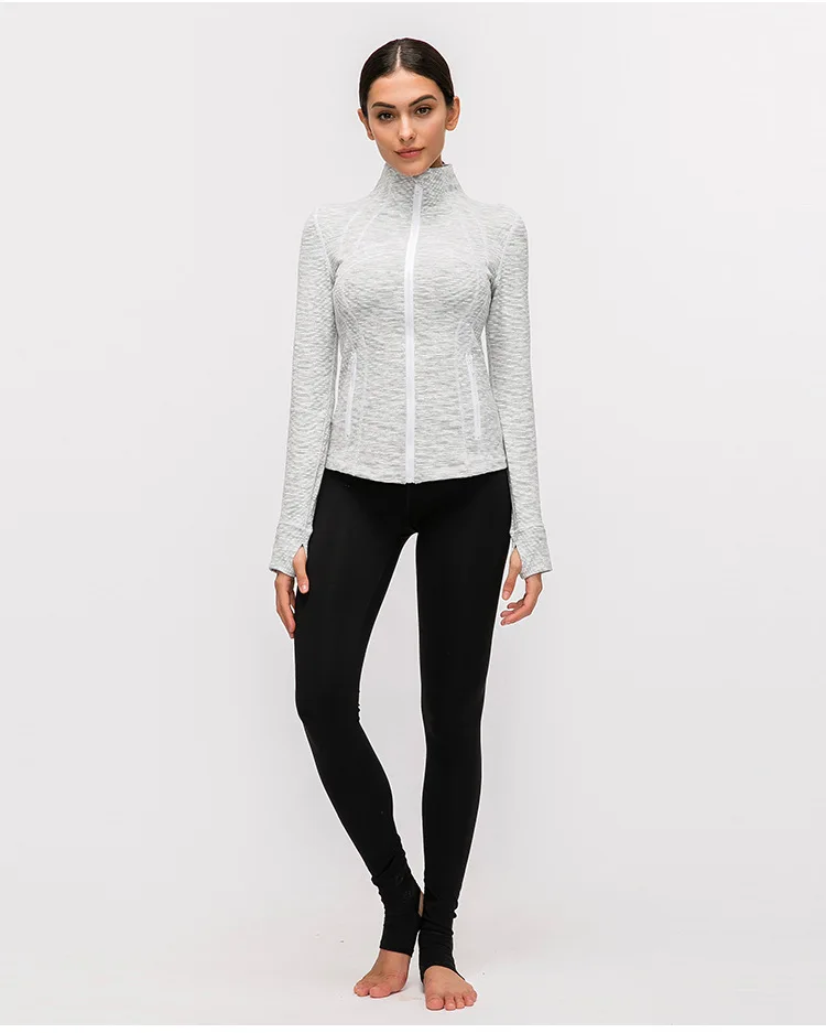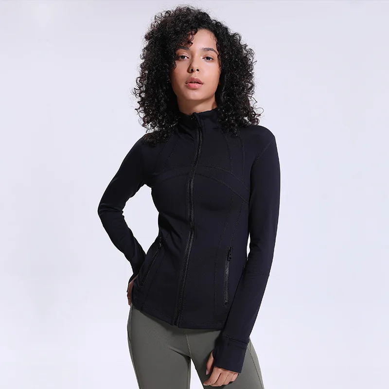 Luluyun Apparel Women Winter fitness clothing Nylon Spandex fabric Long Sleeve Sim Tops Zipper Sports Yoga Jacket